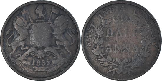 | Coin, India, 1/2 Anna, 1835 |