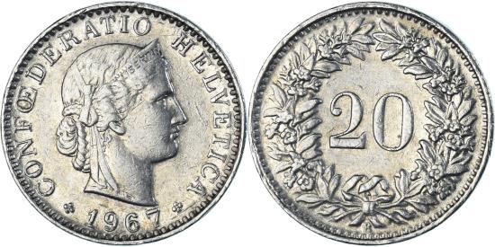 | Coin, Switzerland, 20 Rappen, 1967 |