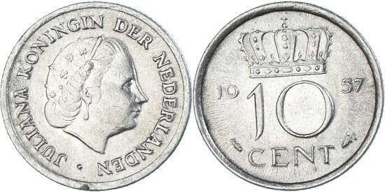 | Coin, Netherlands, 10 Cents, 1957 |