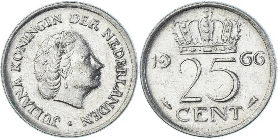 | Coin, Netherlands, 25 Cents, 1966 |