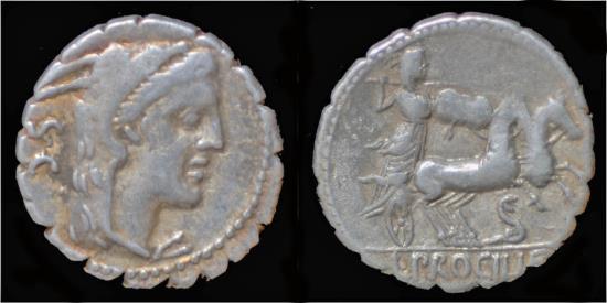 L.Procilius AR serrate denarius