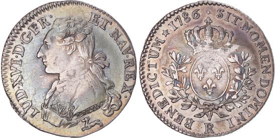 | | Coin, France, Louis XVI, 1/5 Écu, 24 Sols, 1/5 ECU, 1786, Orléans, | | | 1/5 Écu, Bust left, Crowned arms of France within branches, LUD <Bullet> XVI <Bullet> D <Bullet> G <Bullet> FR <Bullet> ET NAV <Bullet> REX <Bullet> | | FEATURES |