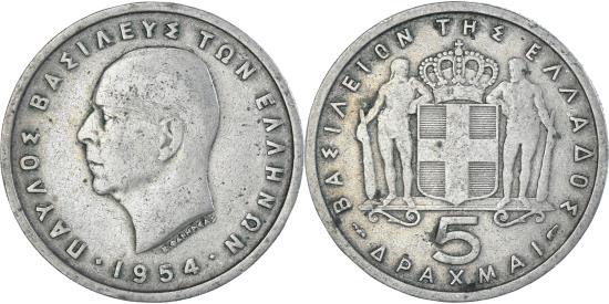 | | Coin, Greece, 5 Drachmai, 1954 | | | FEATURES |