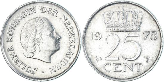 | Coin, Netherlands, 25 Cents, 1975 |