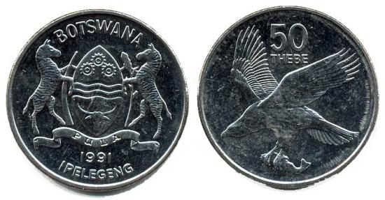 50 Thebe. 1991 Issue. Nickel Clad Steel. 28.5mm. Lot of 16 coins for $28.60
