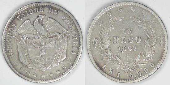 COLOMBIA - United States, 1862 Peso, Very Fine
