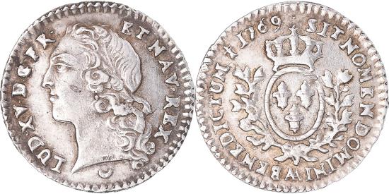 | | Coin, France, Louis XV, 1/20 Écu au bandeau, 1769, Metz, , Silver | | | Head on the left wearing a headband., Crowned shield between two olive branches. | | FEATURES |