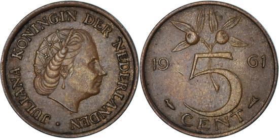 | Coin, Netherlands, 5 Cents, 1961 |