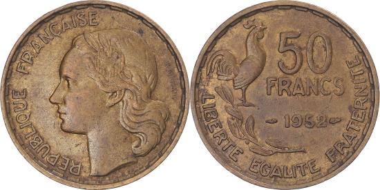 | | Coin, France, Guiraud, 50 Francs, 1952, Paris, , Aluminum-Bronze | | | Guiraud, Head left, Denomination above date at right, rooster above laurel branch at left, Without mint mark. | | FEATURES |