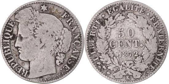 | | Coin, France, Cérès, 50 Centimes, 1872, Bordeaux, , Silver, KM:834.2 | | | Cérès, Laureate head left, Denomination within wreath | | FEATURES |