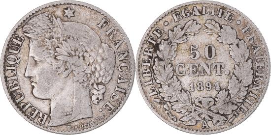 | | Coin, France, Cérès, 50 Centimes, 1894, Paris, , Silver, KM:834.1 | | | Cérès, Laureate head left, Denomination within wreath | | FEATURES |