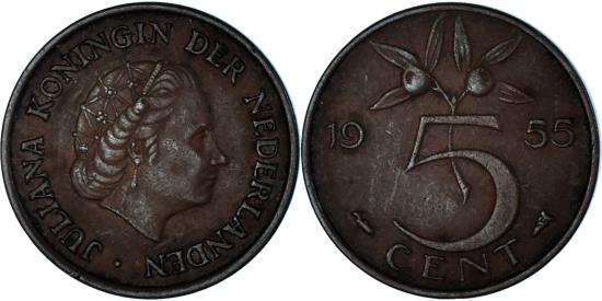 | Coin, Netherlands, 5 Cents, 1955 |