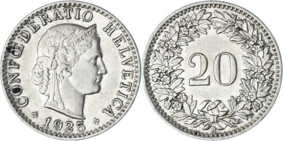| Coin, Switzerland, 20 Rappen, 1925 |