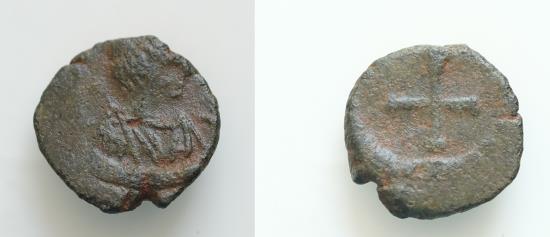 | VANDALS. Pseudo-Imperial coinage. Circa 440-490. Æ Nummus (10mm, 0.9g, ). Diademed, draped, and cuirassed bust right / Latin cross within wreath. |