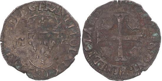 | Coin, France, Henri III, Douzain aux deux H, Lyon, , Billon |