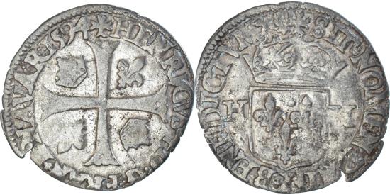 | Coin, France, Henri IV, Douzain aux deux H, 1594, Bayonne, 3rd type, |