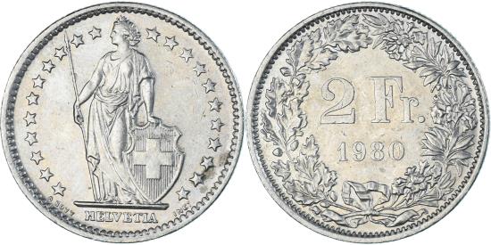 | Coin, Switzerland, 2 Francs, 1980 |