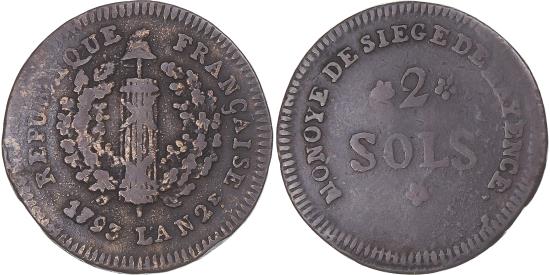 | Coin, Germany, 2 Sols, 1793, Mayence, Siège de Mayence, , Copper |