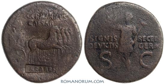 GERMANICUS. Father of Caligula.. (d. AD 19) Dupondius, 13.88g. Rome. Celebrating the recovery of the eagles.
