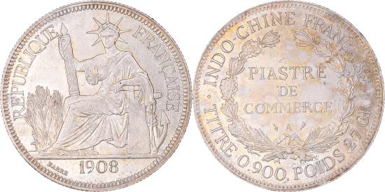 | | Coin, FRENCH INDO-CHINA, Piastre, 1908, Paris, , Silver, KM:5a.1 | | | Liberty seated left with fasces., Denomination within wreath. | | FEATURES |