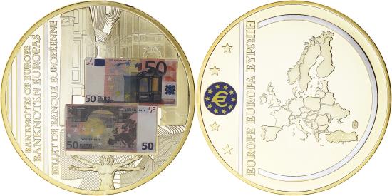 | | France, Medal, Billet de Banque Européenne, 50 euros, 2011, , Copper | | | FEATURES |