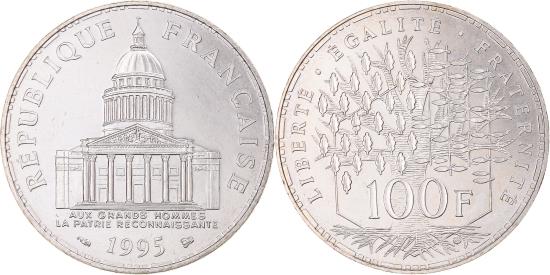 | | Coin, France, Panthéon, 100 Francs, 1995, Paris, , Silver, KM:951.1 | | | Panthéon, Pantheon, date below, Leafy design above denomination, Without mint mark. | | FEATURES |