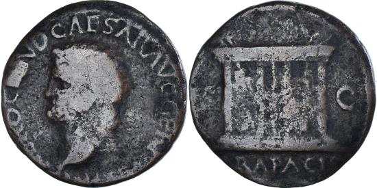 | | Coin, Nero, As, 62-68, Lugdunum, Rare, , Bronze, RIC:461 | | | Head of Nero, bare, left; small globe at point of neck, Altar with decorated panels and ornamented top, and central double doors, NERO CLAVD CAESAR AVG GER P M TR P IMP P P, ARA PACIS S C | | FEATURES |