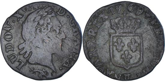 | Coin, France, Louis XV, 1/2 Sol à la vieille tête, 1769, Besançon, |
