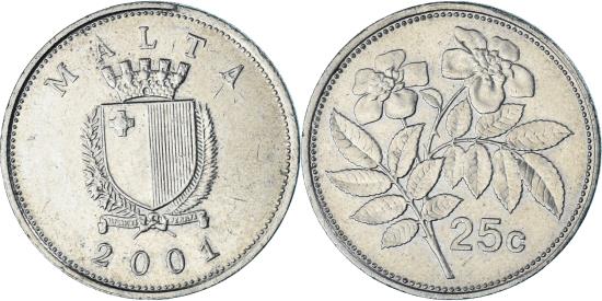 | Coin, Malta, 25 Cents, 2001 |