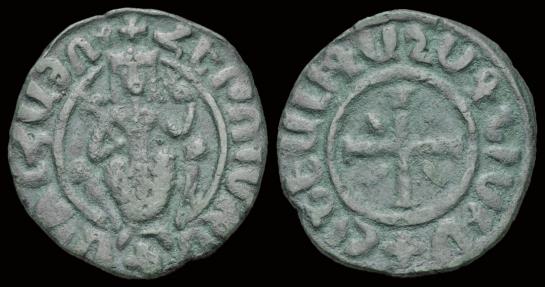 obv: Hetoum seated facing on throne decorated with lions, holding lis-tipped scepter and globus cruciger