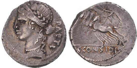 | | Coin, Considia, Denarius, 46 BC, Rome, , Silver, Crawford:465/4 | | | C. Considius Paetus | | FEATURES |