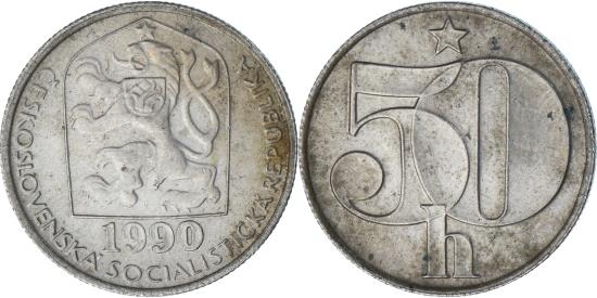 | Coin, Czechoslovakia, 50 Haleru, 1990 |