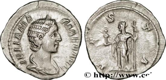 JULIA MAMAEA Daughter of Julia Maesa, mother of Severus Alexander - Augusta Denier 226 Rome silver