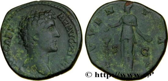 Commentary : Exemplaire sur un flan épais, ovale et irrégulier. Beau portrait juvénile de Marc Aurèle. Revers de style fin à l’usure régulière. Patine verte