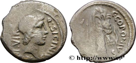 C. COPONIVS - PR. S. C. Massue d’Hercule surmontée de la léonté, tournée à droite, accostée d’un arc et d’une flèche