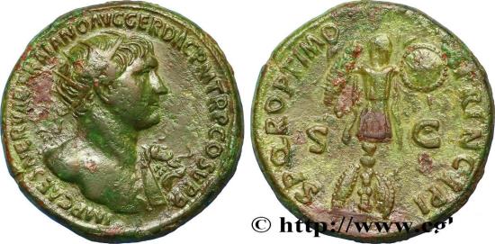 Country: TRAJANUS Year: 107 State/Grade: AU Nominal: Dupondius Weight (g): 12,91 Material: bronze Catalog number: C.573 (2f.) RIC.586 RIC.586 BMC/RE.906 H.1/326 RCV.3224 (700$)