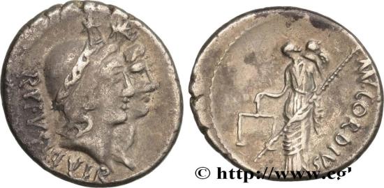 MN. CORDIVS en monogramme Vénus Verticordia debout à gauche, tenant une balance de la main droite et un long sceptre transversal de la gauche ; petit Cupidon sur lépaule