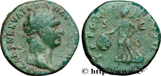 IMP CAES NERVA TRAIA-N AVG GERM P M Tête laurée de Trajan à droite (O*)