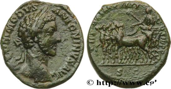 TR P VI IMP IIII COS III P P// S C Commode, drapé, debout à gauche sur un quadrige, tenant un sceptre de la main gauche