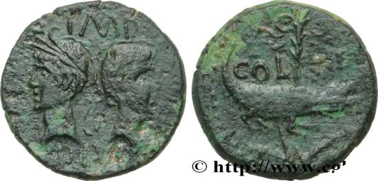 AUGUSTUS and AGRIPPA Dupondius c. 20-14 AC. Nîmes, Gaule R1 copper