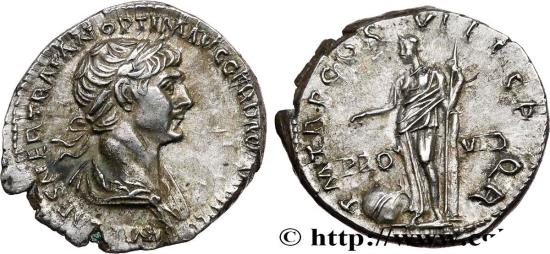TRAJANUS Augustus Denier 116 Rome R1 silver