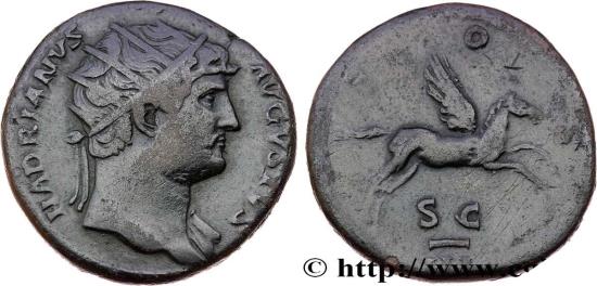 Commentary : Monnaie centrée à l’usure régulière. Joli Pégase ainsi qu’un buste agréable. Patine foncée