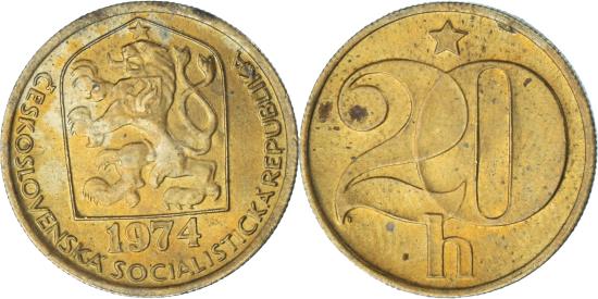 | Coin, Czechoslovakia, 20 Haleru, 1974 |