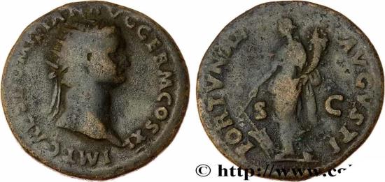 FORTVNAE - AVGVSTI/ S|C Fortuna (la Fortune) debout à gauche, tenant un gouvernail de la main droite et une corne dabondance de la main gauche