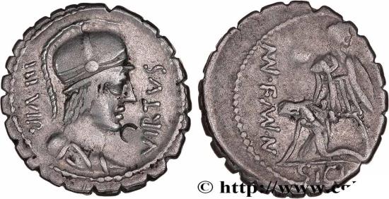III VIR/ VIRTVS Buste casqué de Virtus (la Virilité) à droite