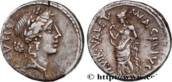 MN ACILIVS/ III VIR VALETV Valetudo (la Santé) debout à gauche, appuyée sur une colonne de la main gauche et tenant un serpent de la main droite