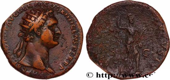 Commentary : Monnaie idéalement centrée présentant un très beau portrait de Domitien. Usure plus importante au revers. Patine marron