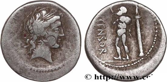 L. CENSOR Le satyre Marsyas, barbu et nu marchant à gauche, saoul, tenant une outre sur l’épaule ; derrière, une colonne