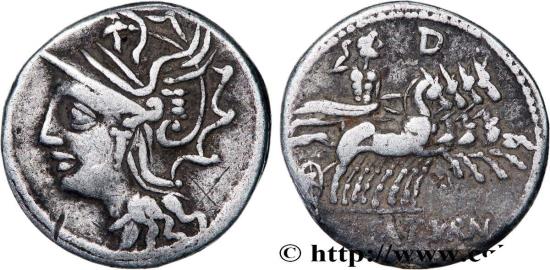 L. SATVRN/ D Saturne dans un quadrige galopant à droite, brandissant une harpe de la main droite et tenant les rênes de la main gauche