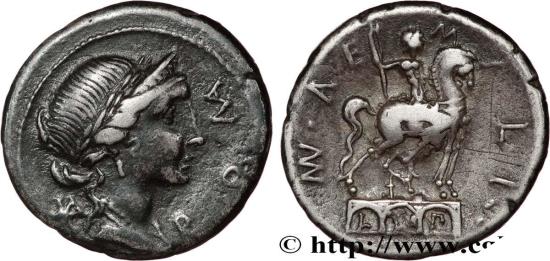 AEMILIA Denier c. 114-113 AC. Rome silver